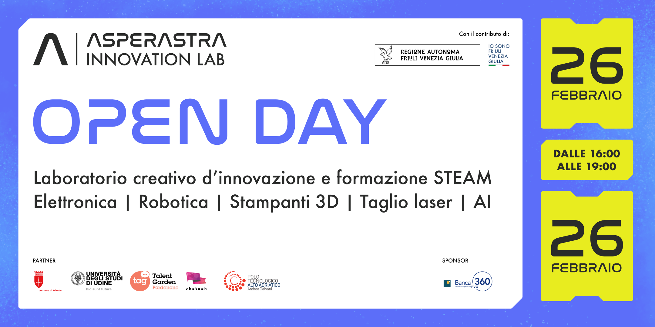 Asperastra Innovation Lab Corso Camillo Benso Conte di Cavour 2/2, Trieste, TS, ItalyApriamo le porte del nostro Innovation Lab con un pomeriggio dedicato a chi è curioso di conoscere da vicino il progetto, lo spazio e le persone che lo abitano. Durante ... Leggi l'articolo completo